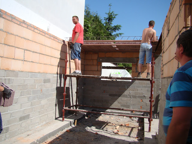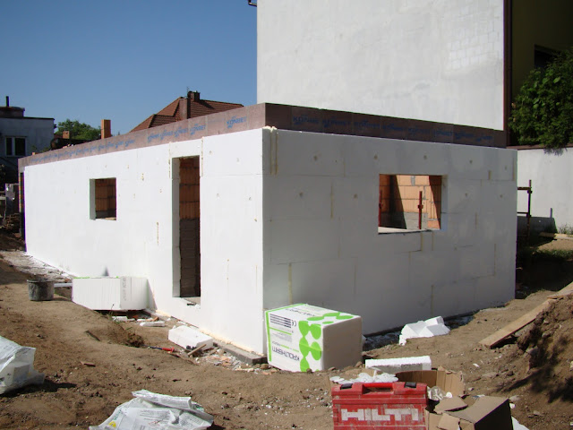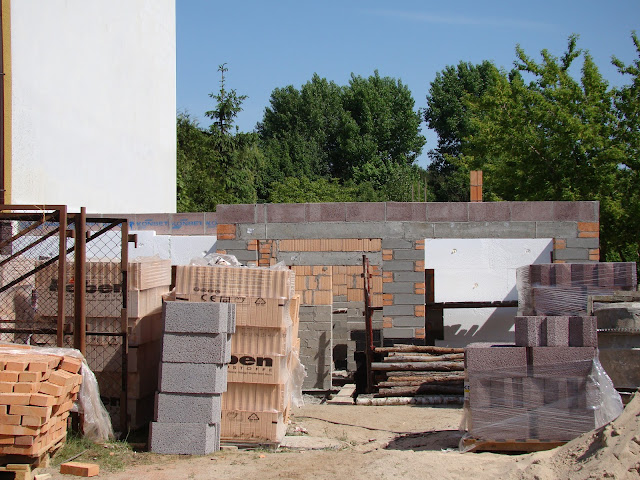 Dziś przyjechał do nas strop nad piwnicę. Wybraliśmy ostatecznie Konbet 10-komorowy. Oczywiście jak to w budowlance czegoś nam zabrakło, a mianowicie jednej belki stropowej i około 50 pustaków stropowych. Jutro wszystko ma na nas czekać na składzie. Całe szczęście mamy naszą ekipę budowlańców, którzy sami po to podjadą:). Oby tak dalej :) Praży słońce nieziemsko ;) oj będzie lanie potrzebne na stropie... Zalewanie stropu już w piątek. Poniżej kilka zdjęć z dzisiejszego dnia. Widać drugą część bliźniaka, która ma już jakieś 5 lat. Zdjęcia można powiększyć i wyświetlić w pełnym widoku. Pozdrawiam pierwszych obserwujących :)